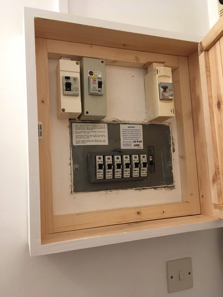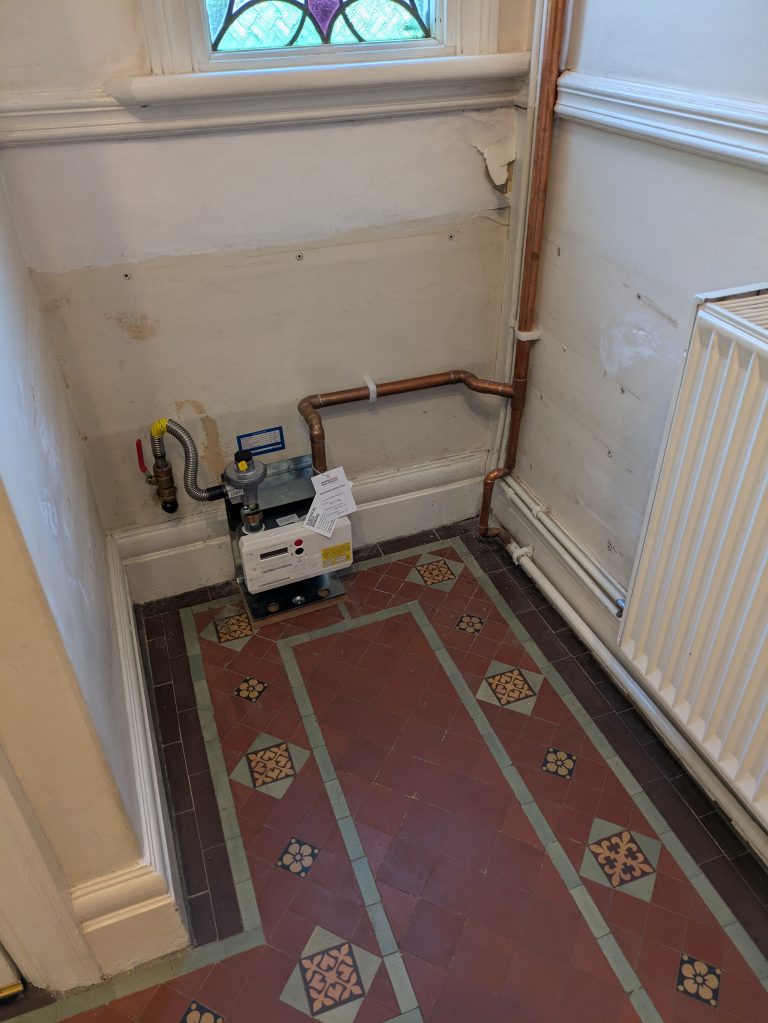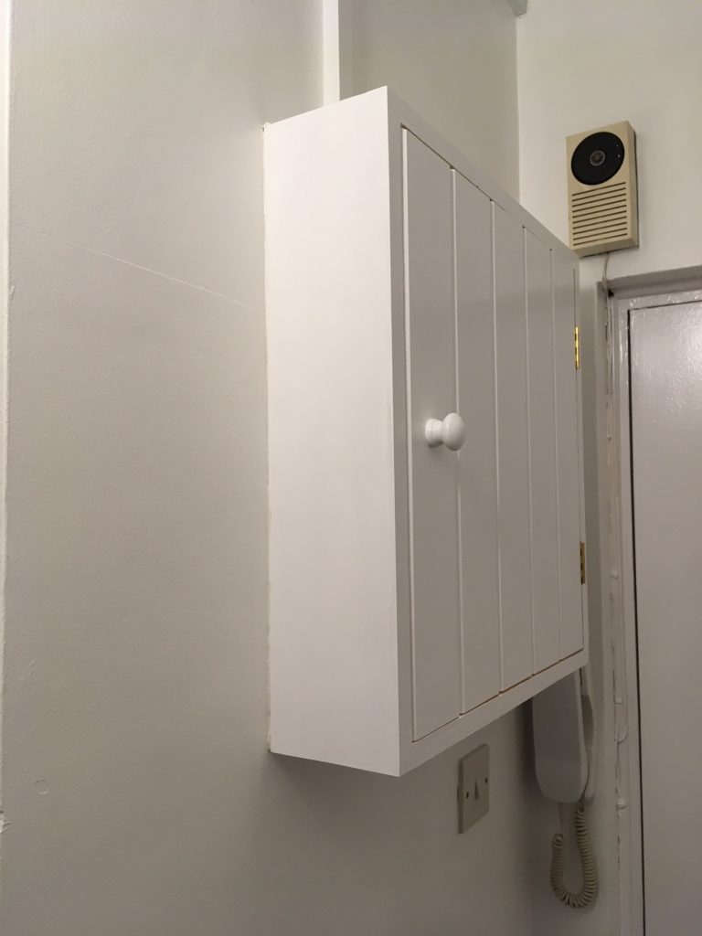 A Removable cabinet built to enclose a gas meter / adjacent pipework and vertical pipework boxed in.